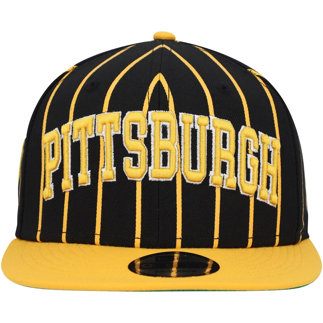 Ensure your collection of headwear is in top-notch shape heading into baseball season by grabbing this Pittsburgh Pirates City Arch 9FIFTY snapback hat from New Era. Along with the classic team colors and graphics, this cap features a unique pinstripe design. The high crown and flat bill give it that added swagger for game day.